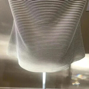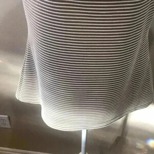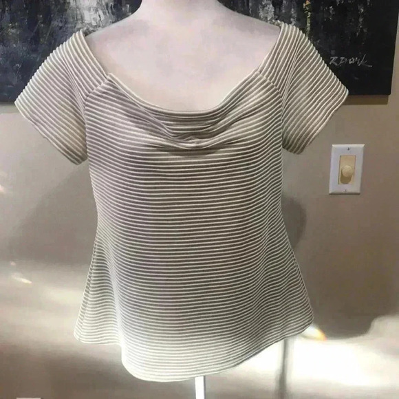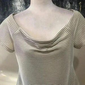 7th Avenue NY & Co Tan and White Draped Neckline Horizontal Striped Top-XL