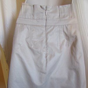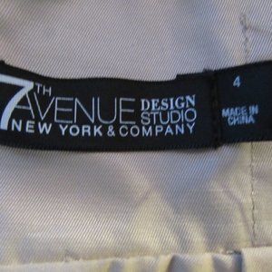 This is a Beautiful, Soft, and Much Nicer in person Tan NWT Size 4 - 7th Avenue New York & Company Tan Knee Length Straight & Lined Skirt. It is a Size 4, is pleated in the front and back, has a zipper back with a hook, and is just beautiful. Retails for $59.95 and comes from a smoke free very clean environment. The measurements are as followed: