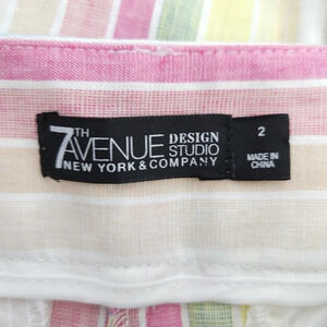 7th Avenue New York Co Ankle Pants Linen Rainbow Striped Mid Rise