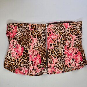 7th Avenue New York & Co Pink Brown Animal Print Floral Strapless Tube Top Sz XL