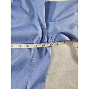 Fair: Significantly visible flaws, heavy signs of wear, and/or missing or damaged components. The 7th Avenue New York & Company Shirt Button Down 3/4 Sleeve Top in Blue, size M, is a stylish and versatile top perfect for various occasions such as travel, casual outings, and business meetings. This top features a classic collared neckline with a button closure, 3/4 sleeves, and a ruffled cuff for added detail. Made from a breathable cotton blend fabric, this lightweight top is machine washable and easy to care for. Ideal for the warmer seasons of spring and summer, this top offers a regular fit and is adorned with accents like a ruched design for a touch of sophistication. Perfect for a woman looking for a basic yet chic addition to her wardrobe.