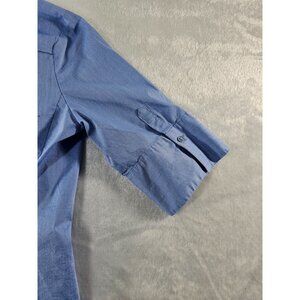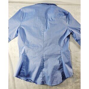 7th Avenue New York & Company Shirt Button Down 3/4 Sleeve Top-Blue-SZ M