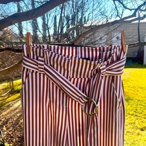 7th Ave. New York and Company wide leg brown and white striped pants 👖; women's size 2 (waist 16” / length 33” approximately)