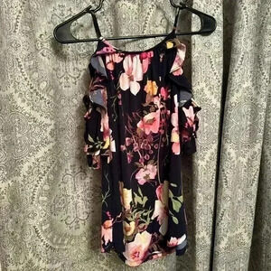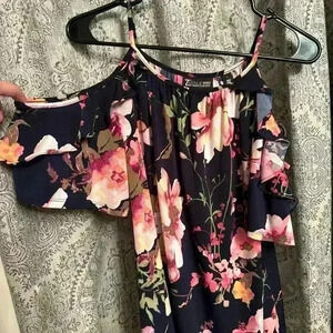 This 7th Avenue Design Studio blouse is a stylish addition to your wardrobe. The floral pattern, cold shoulder sleeves, and round neckline make it perfect for any occasion. Available in size L, it is made of a comfortable blend of polyester and spandex. The blouse is designed for women and is a basic style with a designer theme. Ideal for those who love to add a touch of elegance to their outfits.