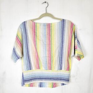 7th Avenue Rainbow Striped Linen Blend Boxy Top