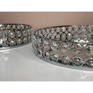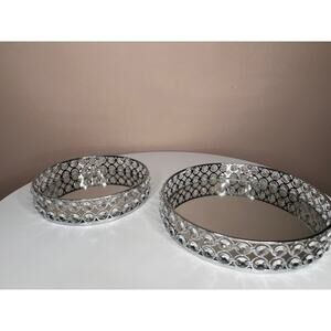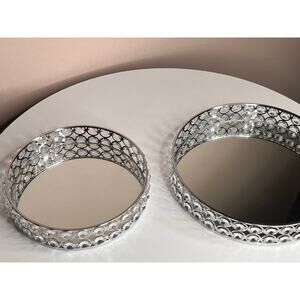 Set of 2!! One 8" and one 10" makeup organizer/candle plate/display. Elegant and unique stylish design, makes with sparkling crystals intricately woven into metal rings around a gorgeous mirrored base.