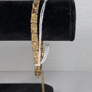 8" 10 Kt Gold Nugget Bracelet w/chain catch