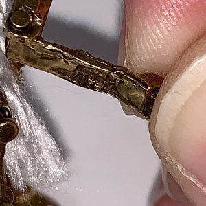 This bracelet is hallmarked AV and stamped 417 which means 10K gold. This bracelet is 6.4 mm wide and weighs 11 grams. This is a vintage piece of jewelry.