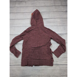 VGUC 435 by Matilda Jane Half Past One ruffled jacket. Burgundy stripes with floral corduroy lining on the hood. Full front zip and ruffles. Light wash wear