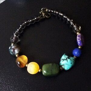 Each stone or bead is hand selected for authenticity, visual interest, and to create a one-of-a-kind bracelet that reflects your personality and a fresh, positive vibe! I use mostly genuine semi-precious stone beads for my Chakra Creations. Some are rough and/or irregular shaped which lends to the charm of this bracelet, and occasionally I'll include the perfectly matched crystal, shell or glass bead, if it says it wants to be part of this :o). This particular bracelet is finished with Smokey Faceted + Round Crystal Beads.