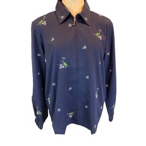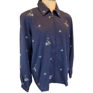8 Alfred Dunner Women's Navy Blue Full Zip Spring Jacket Navy Blue Embroidered Frogs