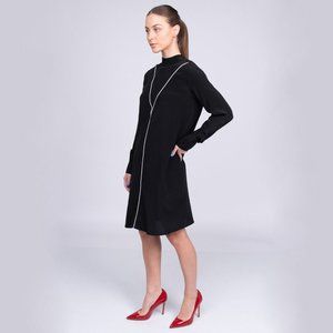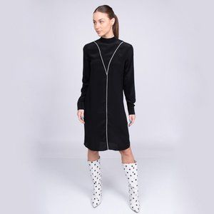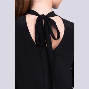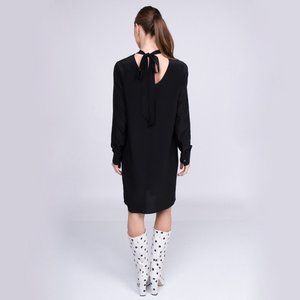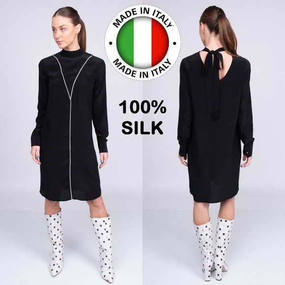 BRAND NO.8 100% Silk Shift Dress with Open Tie Back in Black, Size S Made in Italy