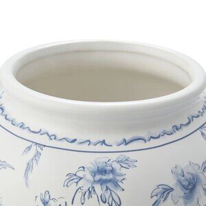8" Blue Floral Round Ceramic Vase - Handcrafted Farmhouse Accent