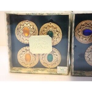 8 Bombay Company Napkin Rings Gold Tone With Gems Set Of 8 Napkin Rings Boxed
