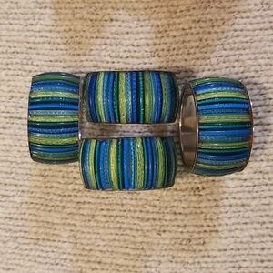 Vibrant napkin rings with striped patterns. Perfect for adding color to your table setting.