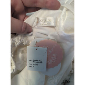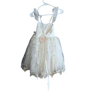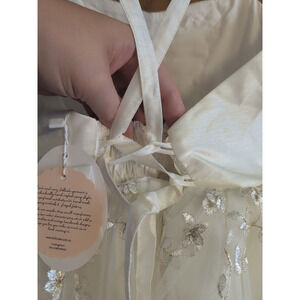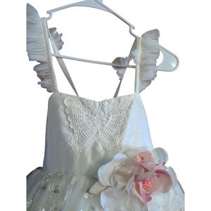 NWT Dollcake Evening Haze Babydoll dress. White satin bodice with embroidered butterfly. Tulle trim on the straps. Tulle skirt with gold trimmed flowers and hem detail. Fully lined. Corset back. Removable flower pin at the waist