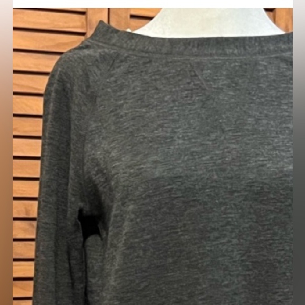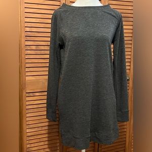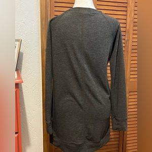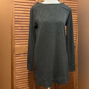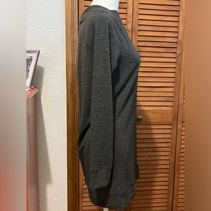 Excellent like new condition. Charcoal tunic with pockets. About 28.5 inches long. Seamed like a sweatshirt. Made of 65 polyester, 30 rayon and 5 spandex.