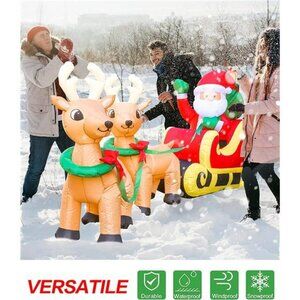 8 FT Long Inflatables Santa on Sleigh with 2 Reindeer Christmas Decoration