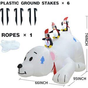 Eye-catching LED light: Christmas Polar Bear with Penguins Shaking Head inflatable decoration comes with bright built-in LED lights. It is bright enough for your neighbors and friends to quickly discover this lovely decoration even at night.