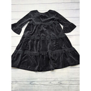 VGUC Hanna Andersson velour twirl dress. Solid black. Tulle accents. Light wash wear