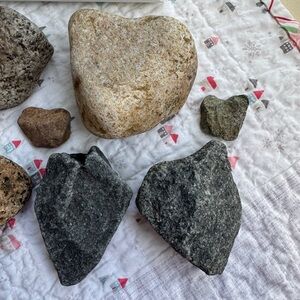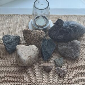 Set of 8 rocks - found on New England beaches. Nice in a bowl, tray, bookshelf, or garden. Anywhere you find a cute spot! Due to weight, these cannot be combined with other listings . Fast and careful shipping
