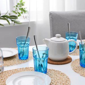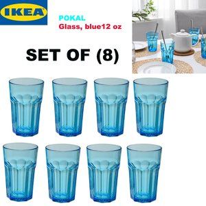 (8) IKEA POKAL Glass Turquoise 12 oz Set Of 8 Tempered Glass New Design