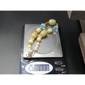 8 Inch Sterling Silver White And Cream Glass Beads Bracelet