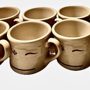 8 Longaberger Mugs Woven Traditions Pottery 4" Coffee Cups Red/Brown Pattern VTG