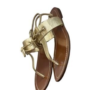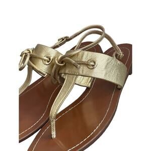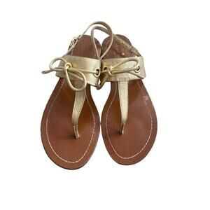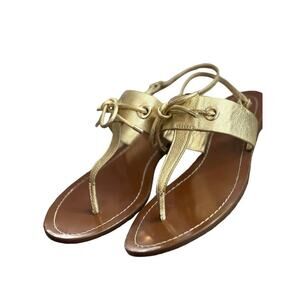 8 M Kate Spade New York Gold Slingback Crossover & Bow Flat T-Strap Sandal