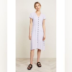 Fabric: Crepe. Decorative buttons at front & sides. Knee length. V neck. Short sleeves. Button at front. Button at skirt. Lined. Shell: 100% viscose. Dry clean. Style #RAGBO44025. Length: 41.75in / 106cm, from shoulder. This breezy lilac dress from Rag & Bone is an effortless blend of chic and casual—and it will inspire you to get out there and enjoy the sunshine. Color: purple