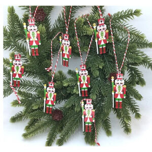 8- Nutcracker Ornaments Mini Tree Wooden Peppermint Thread 2 in