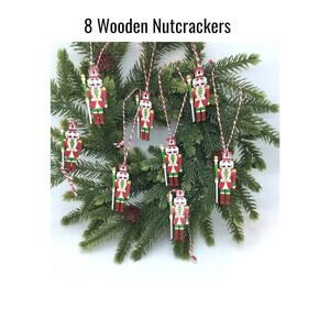 8 Mini Tree Wooden Nutcracker Soldier Ornaments