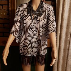 8 Of HEARTS pullover. Sheer, black & white. Tag shows size S, but it's more like Large. I included picture #3 with measurements. Used only two times over a black strapless dress.