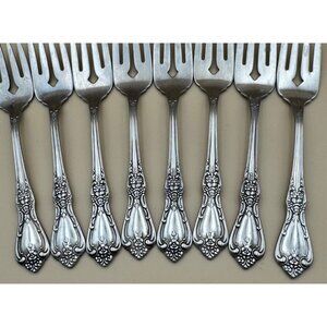 Stylish Oneida stainless steel salad forks with an elegant vintage design, perfect for complementing table settings. Durable and easy to maintain.