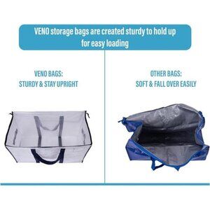 🧿Stands Upright for Easy Loading – You don’t have to worry about your bag falling over while trying to load or unload. VENO large storage bags stay upright for easy loading with our sturdy and durable PP Woven material that lasts a lifetime and makes moving and storing a breeze. Find stability and security with VENO moving bags, storage bags for clothes, and storage boxes with lids.