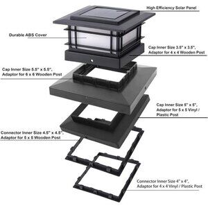 🧿EASY TO ASSEMBLE: Complete with detailed instructions. Our fence post solar lights come with different sizes of bases, which are compatible with any standard true size 3.5"x3.5", 4"x4", 4.5"x4.5", 5"x5", 5.5"x5.5" wood