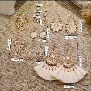 8 Pairs Boho Gold Embellished Pearl Drop Earrings Set
