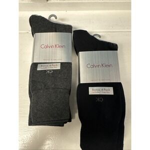 8 Pairs Calvin Klein Men's 7-12 Stretch Crew Dress Socks 6 Black 2 Gray NWT