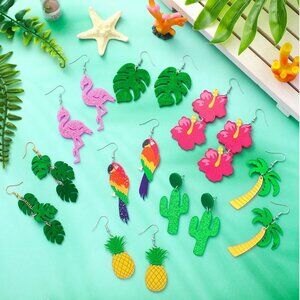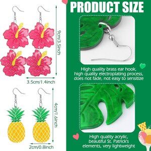 8 Pairs Summer Earrings Acrylic Dangle Hawaiian Tropical Floral Jewelry