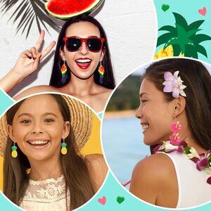 These 8 pairs of summer earrings are a tropical dream—the perfect accessory for sunny days and fun summer nights. Each pair is crafted from durable acrylic and alloy, making them lightweight and comfortable for all-day wear. The vibrant Hawaiian-inspired designs include palm leaves, pineapples, flamingos, and coconut trees—full of energy and perfect for adding a playful, island vibe to any outfit.