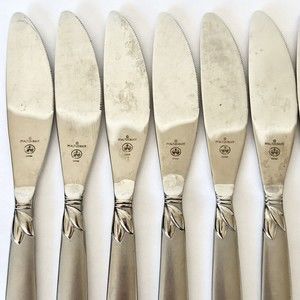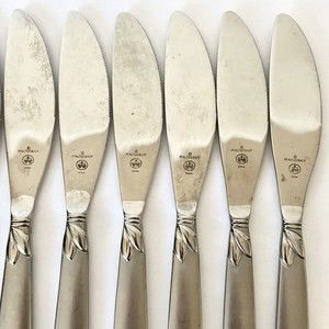 8 Pc Pfaltzgraff stainless 18/0 Satin Laurel Frosted handle Dinner knives