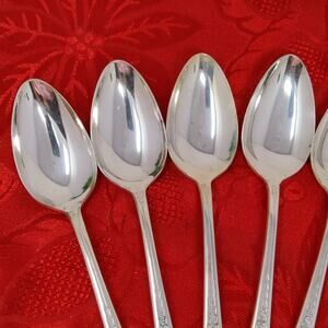 8 Pc Tsp Wm Rogers & Son 1940s Gardenia Silver Plate Flatware Table Spoons