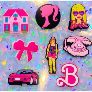8 Pcs Barbie Movie Set Boat Foam Clog Charms Shoe Decoration Girl Pink Colorful