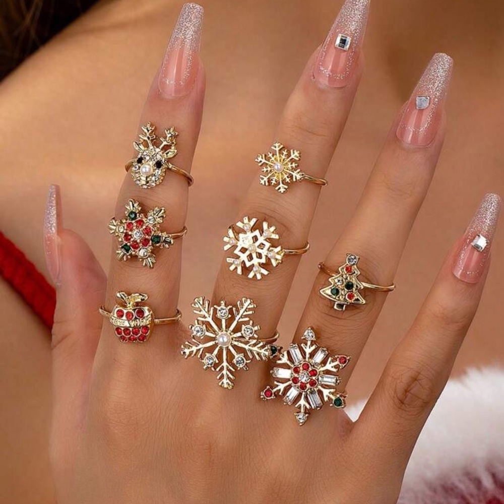 8 Pcs Boho Stackable Christmas Rings Set -