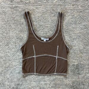 - Rabbit Rose brown stitch crop tank
