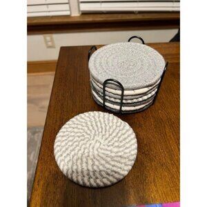 What You Get: You will get more quantity and more multiple styles coasters from us than any others . You'll get 8pcs round hand-woven cotton coasters (ultra-minimalist style, 4.3") and a 4.3"x3.1" black metal coaster holder.4 colors designs 8pcs in total, which can be used in almost any family scene.