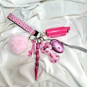 Stay stylish and prepared wherever you go! This all-in-one womenβs safety keychain set includes: