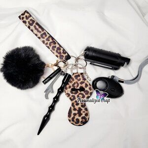 8 Piece Leopard Safety Keychain Set, Pepper Spray, Window Breaker, Alarm + More