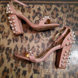8 shoes by Cape Robbin . Pre-owned in excellent condition. Pink synthetic heels covered with white faux pearls. Firmly attached. Ankle buckles. 4" heels.
