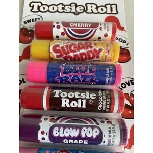 8 Pk Tootsie Roll Candy Flavored Lip Balms Blow Pop Dots Junior Mint Chap Stick.